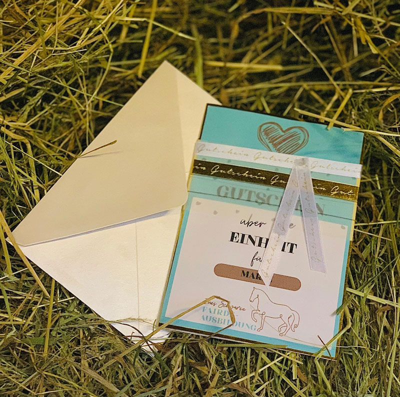 Einlösbar für Online-Liveunterricht oder Unterricht vor Ort im Raum Paderborn – ob für reguläre Reiteinheiten, Sitzschulung, Bodenarbeit oder Gesundheitsförderung beim Pferd. Flexibel, individuell und persönlich abgestimmt.